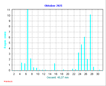 | Letzter Regen: | 11:29 30.10.2025 (ohne Regen seit: 20 Stunden, 25 Minuten) | |||||